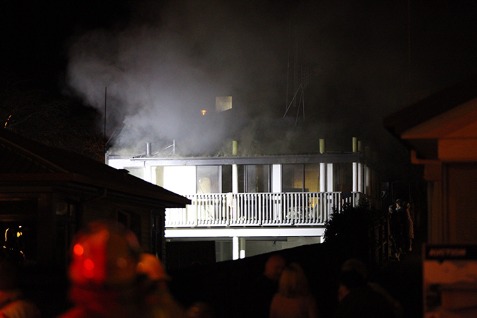 Smoke could be seen billowing from the house in Greerton last night. Photos: Cameron Avery.