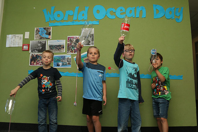 'So we've had people visiting other classes to show the movies that they have made, to talk about recycling and we've invited the whole school to do a mufti day because it's World Ocean Day and we've each had to bring a plastic bottle and we are re-using those things into flowers and stuff,” says Shona.