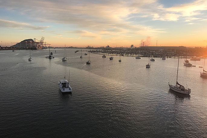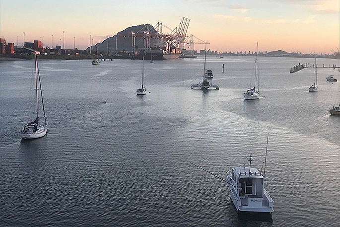 Not quite as daring but we take you to the top of the Tauranga harbour bridge this morning to see the sun rise over the Bay.