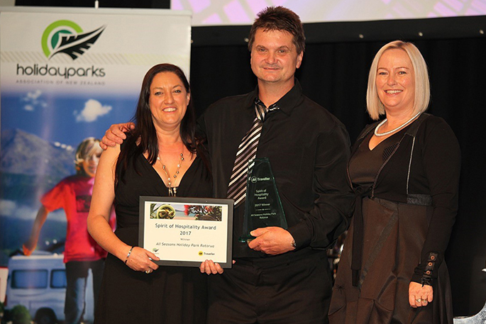 Spirit of Hospitality Award sponsored by AA Traveller Winner: All Seasons Holiday Park, Rotorua, managed by Kevin and Tracie Thornborough.