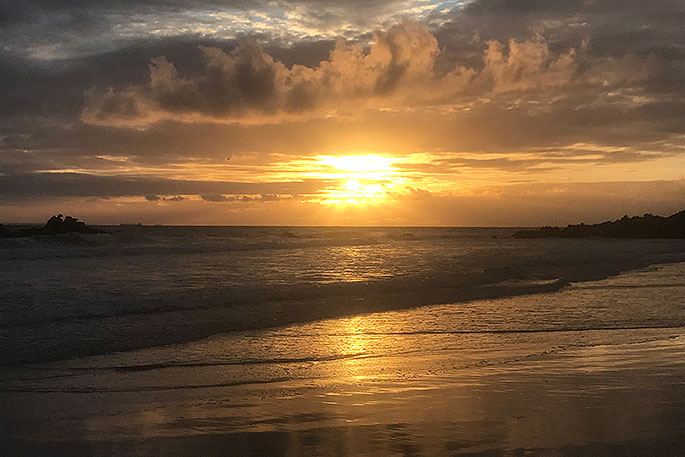 Low tide is at 10.50am and high tide is at 5.10pm. Sea temperature is 16 degrees. There's an average sea swell of about .5m and sunset tonight is at 7.45pm.