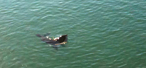 He says the seal swam around the bridge for at least 20 minutes and appeared to be quite unaware of the attention.