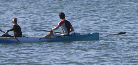 A couple of kayakers also took to the water to get closer to the seal's activities and followed it around the estuary.