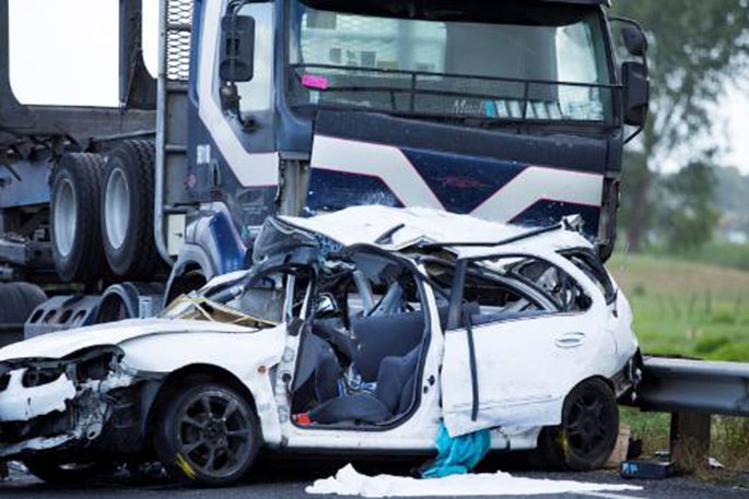 The car was shunted about 30m along the road after the impact near Hinuera stoneworks.