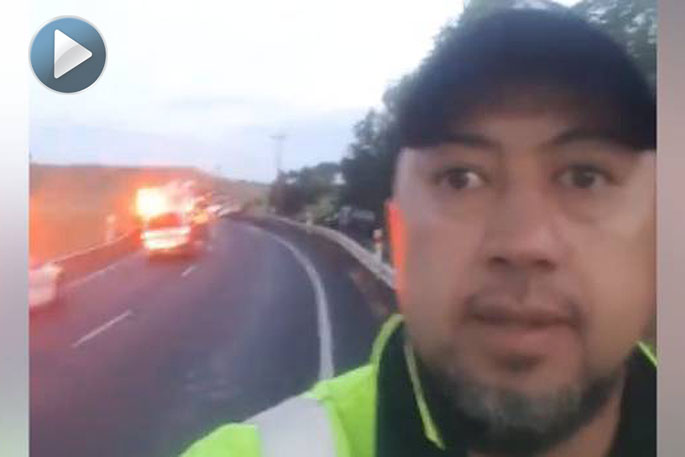 A truck driver's emtional plea from the scene of a crash which killed a Tauranga woman is being shared all over Facebook.