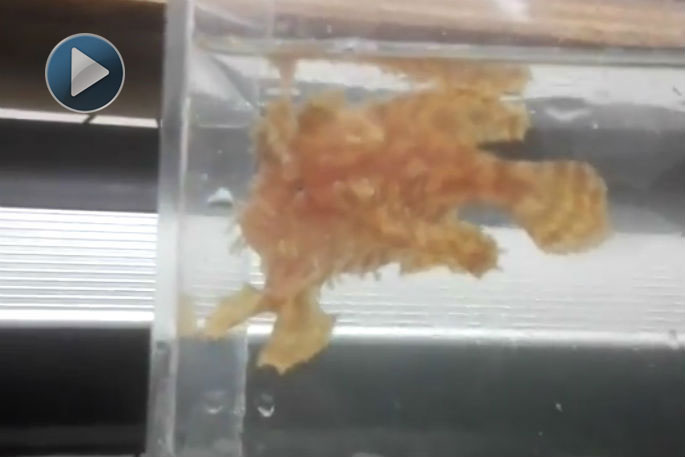Wikipedia describes Sargassum weed fish as Superbly camouflaged anglerfish covered in fleshy weed-like appendages and filaments to resemble algal fronds and branches. They usually live amongst floating mats of Sargassum algae out in the open ocean. Individuals use their arm-like pectoral fins to clamber over the seaweed.