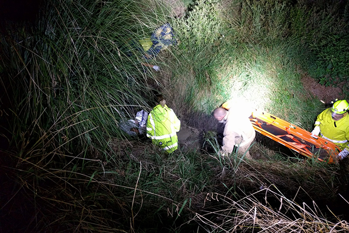 The man was injured at around 5pm on Monday and lay in a drainage culvert until he was discovered early Tuesday morning.