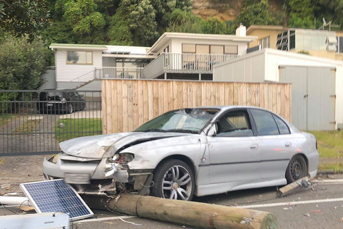 'Police were called to the crash around 7.40am - a car hit a power pole on Pohutukawa Ave near Ohope Four Square.