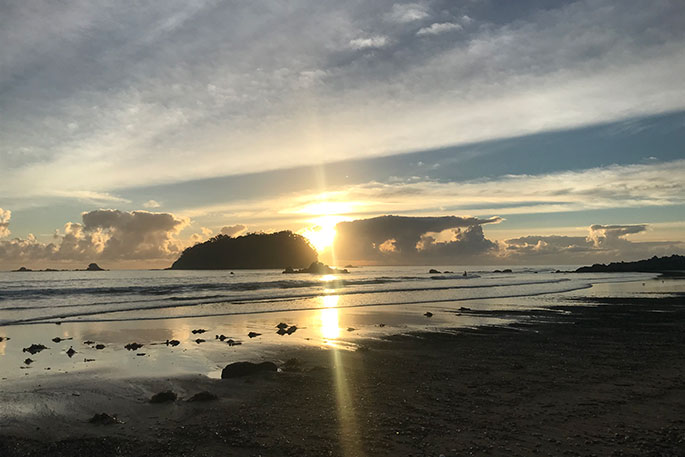 Low tide is at 10.50am and high tide at 5pm. There's a sea swell of about .3m, with a sea temperature of 21 degrees. Sunset tonight is at 7.15pm.