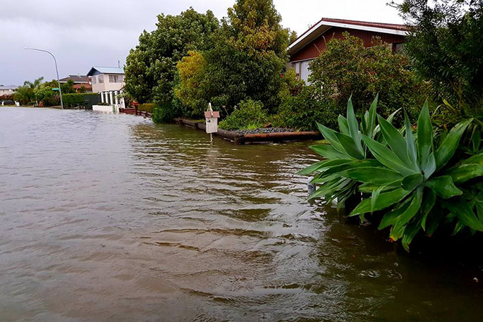 Flooding on Riverside Dr, Whakatane. Photo: Sarah McQueen/Facebook.