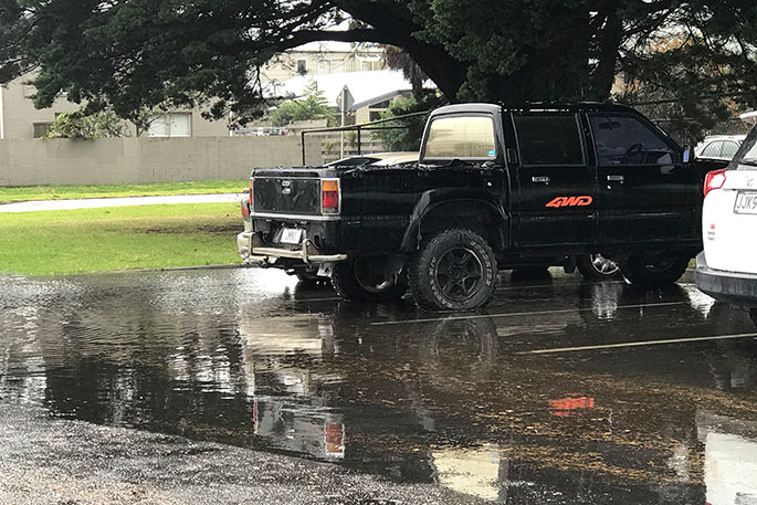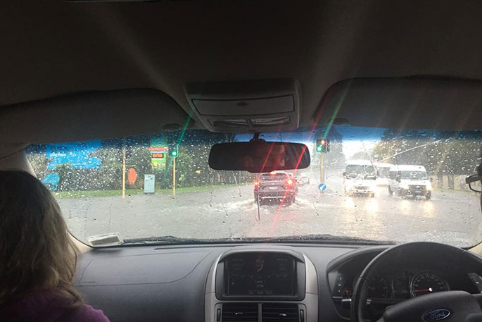 Surface flooding and rain in Rotorua. Photo: Paula McGee/Facebook.