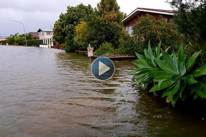 Flooding in Miro St, Mt Maunganui. Photo: Cameron Avery.