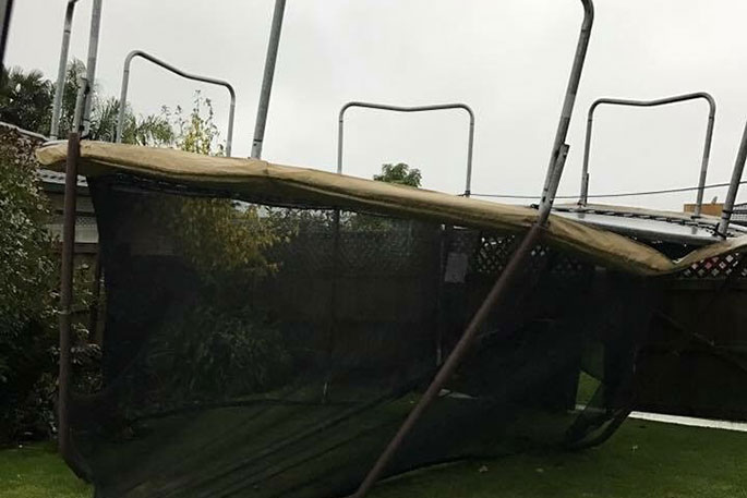 The wind rarked up this trampoline in Pyes Pa. Photo: Anita Saunders.
