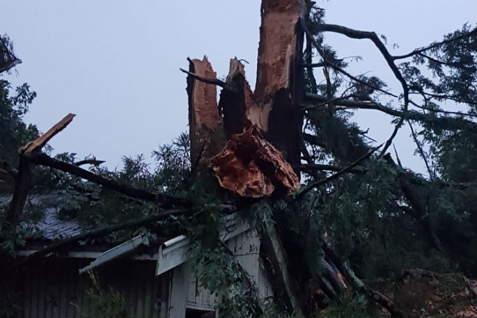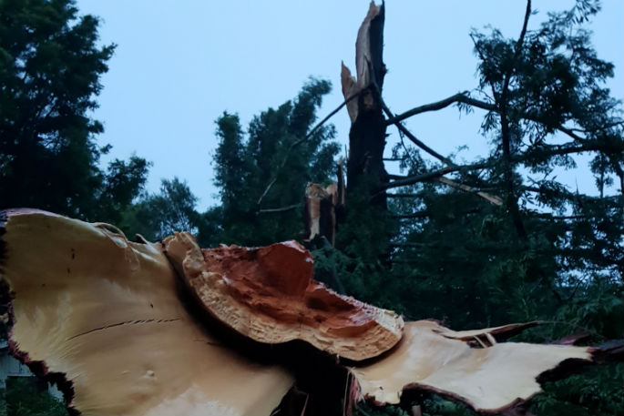 The tree was about half a metre in diameter. The lightning strike carved off a big chunk about five or six metres long.