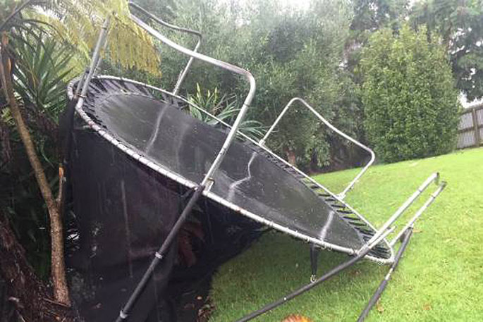 Kevin and Gaye Brooker, who live on Pyes Pa Rd, got a surprise as a mini twister sent their guttering flying along with their shed and trampoline.