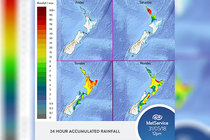 'Looking ahead into the weekend rain creeps into the Far North on Saturday and moves across the North Island during Sunday,” says Law,