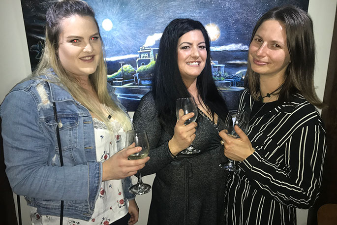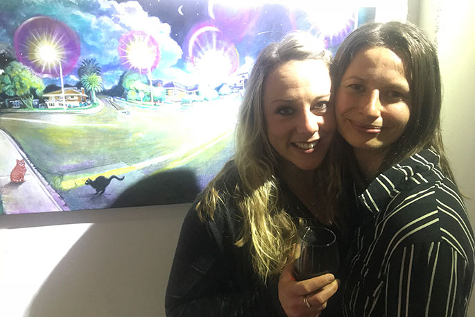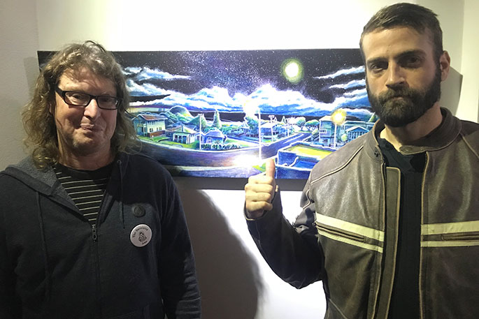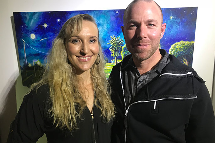 Jamie Harkins has been painting Mount Maunganui street scenes at night, with the paintings being exhibited at Float Antigravity Fitness for one night and one day only.