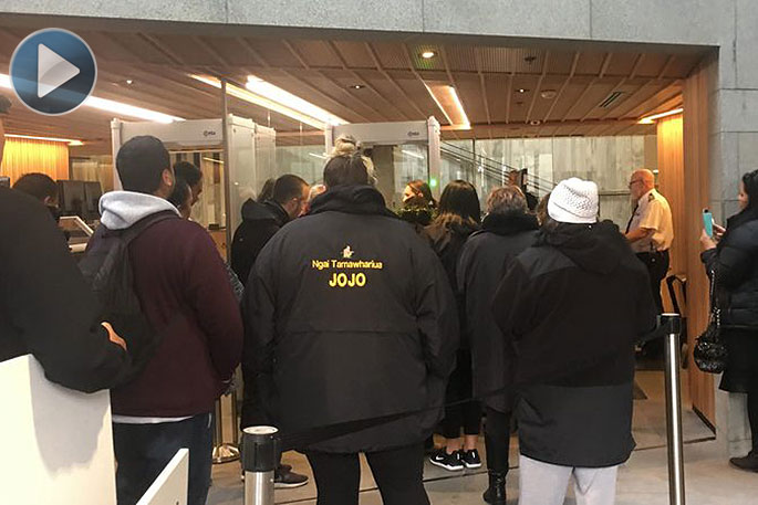 Waikato-Waiariki MP Tamati Coffey told the group that there were seats set up outside for them and that they would not be let in.