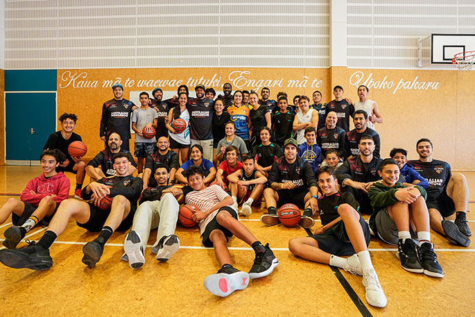 The Australian team have received a traditional Māori welcome to New Zealand and Tauranga at Wairoa Marae, and visited Te Whare Kura o Mauao on Tuesday for cultural exchange and sharing basketball drills.