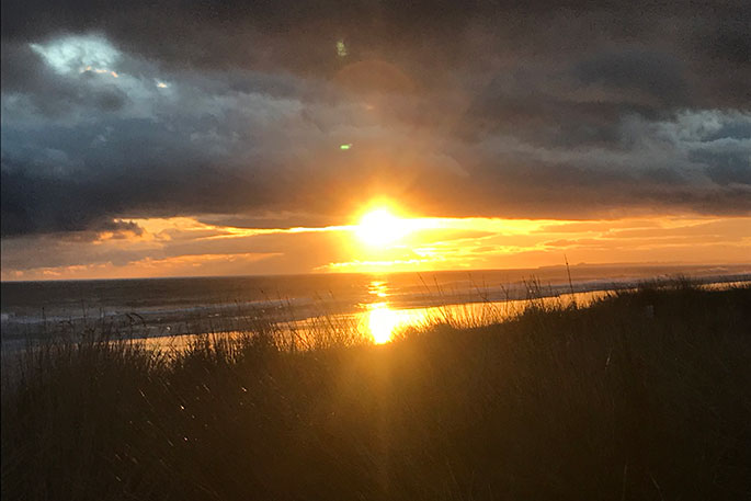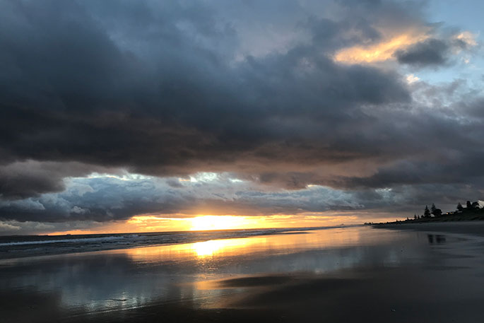 High tide is at 11.40am and low tide at 6pm. There's a sea swell of 0.3m and sea temperature is 16 degrees. Sunset tonight is at 7.43pm.