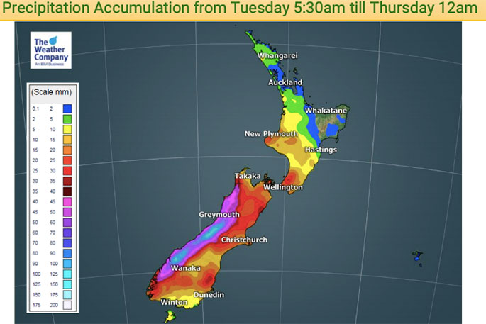 "More rain is coming in the days ahead, with at least two low pressure systems crossing New Zealand between Wednesday and Saturday."