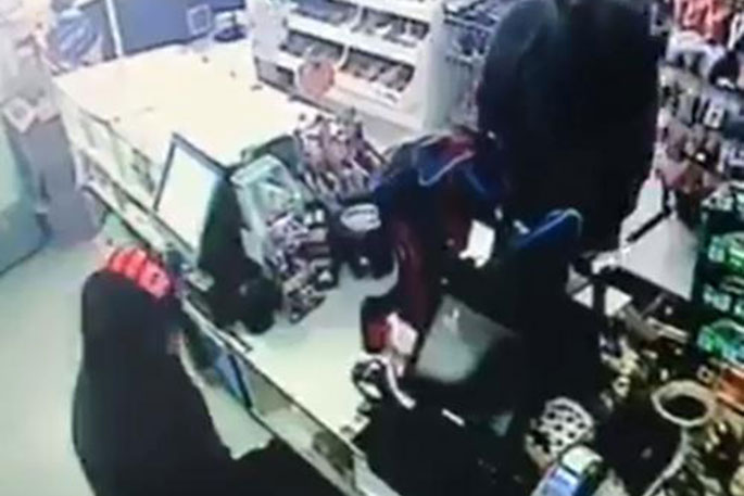 The two men, one holding pair of hedge clippers, stole cash from the Masters Avenue Superette about 8am on Friday 7 December.