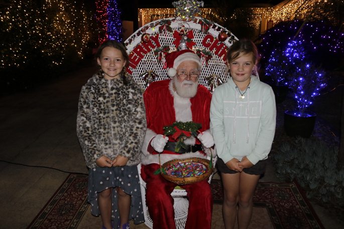 Aria Lawson 9, Zara Crockford 8 with John Shakespeare as Santa Claus. (photo by David Van Gooswilligen)