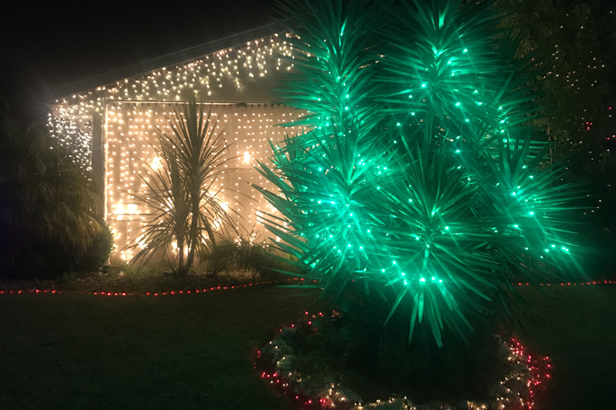 If you missed seeing the Plover Place lights before Christmas, don't fear – grab your favourite Christmas CD, Santa hats, the kids and grandma – and go enjoy a lovely family time one evening before New Year. And remember to take along any space cash to put into the Waipuna Hospice Collection box at the end of the cul-de-sac.