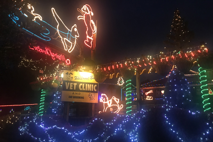 Christmas lights at the vet clinic are rather entertaining, with the pet theme incorporating a dog ‘decorating' a fire hydrant, as well as flashing lights and Christmas music playing.