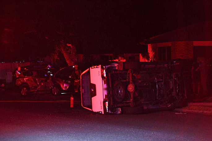 Emergency services were called to the scene on Dalton Drive at around 11pm and found that a car had hit a pole and had rolled.
