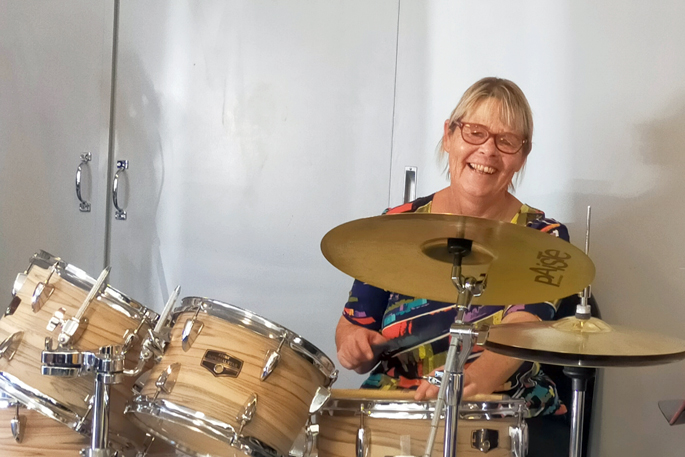 Trudy Van Stee is in her happy place - behind the drums at a music afternoon with about 20 members of A Friends Place. She's surprised to be Volunteering... Read More