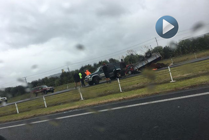 Update 3pm: A vehicle, towing a trailer, has crashed into a barrier and blocked a lane on State Highway 2 beneath the Sandhurst Drive overpass. A police media... Read More