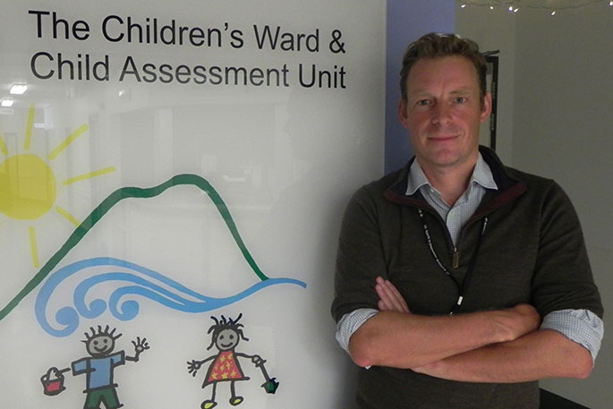 Dr Angus Goodson outside the Tauranga Hospital Children's Ward.
