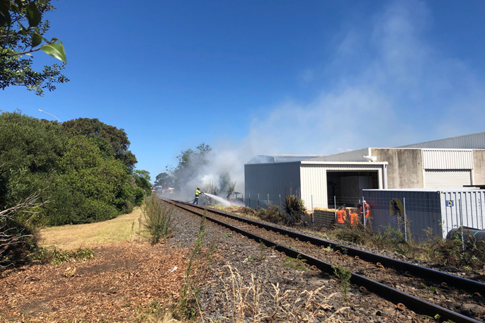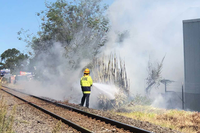 Crews have been called to Newton Street, where a scrub fire along the railway lines has broken out.