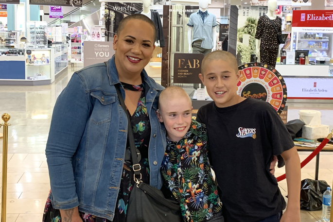 Sam's mum Kirsten Murfitt came with Sam to Farmer, however his stepdad Chris Minty had to be in Auckland on the day of the Shave for a Cure.