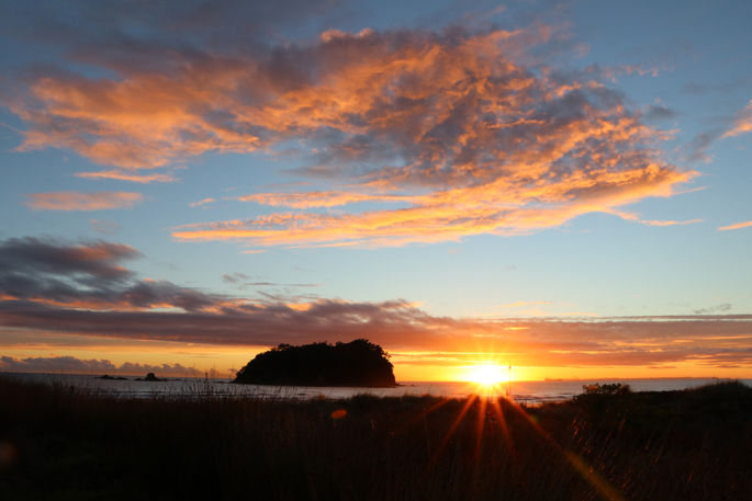 The sun rose over Mount Maunganui beach this morning, making for a spectacular sight for dawn service goers.