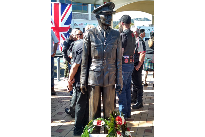 The bronze statue of Sir Keith was officially unveiled in a ceremony outside the Thames War Memorial Civic Centre on Saturday April 27, attended by Defence Minister Ron Mark, the UK's defence attache to New Zealand Commander Guy Haywood, Councillors Sally Christie and Tony Fox, Coromandel MP Scott Simpson, members of the Park family, an air force honour guard and a contingent of Hauraki air cadets.