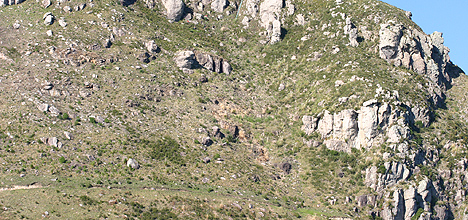 The track is cut near the western end near the rock faces used by the rock climbers.