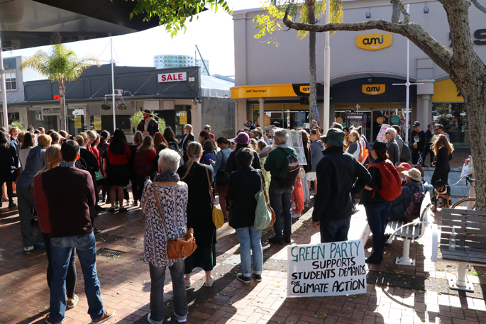 Students and members of the Tauranga community came together to protest in the CBD, raising awareness for climate change, with fossil fuels and passing the zero carbon act being the main topics of discussion.
