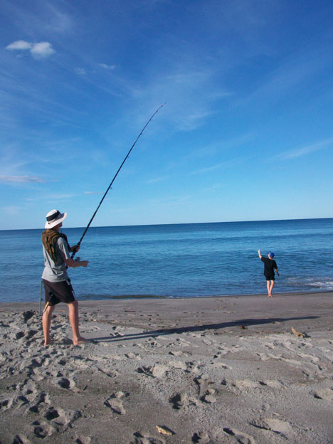 The winning photo in the junior category by Claire Roderick; Tai Bridgeman and Gareth Roderick enjoy some surfcasting at Pikowai Beach.
