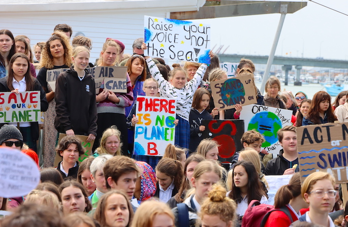 Here in Tauranga, people marched from the waterfront to council chambers, turning up in hundreds for the third School Strike 4 Climate NZ.