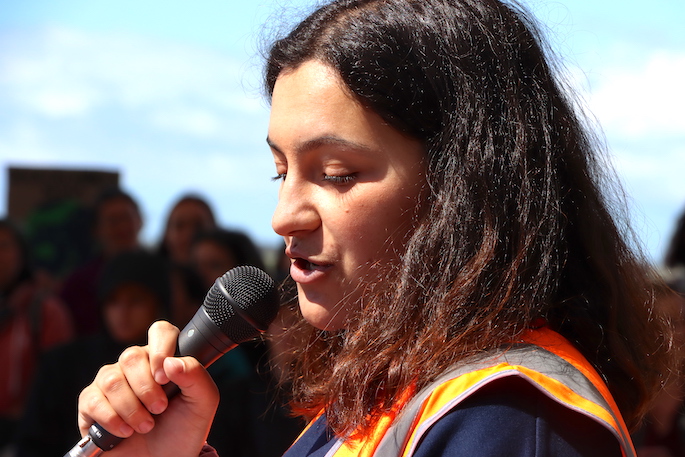 Strike convener Zoe De Malmanche addressed the masses, highlighting the importance of standing up against inaction.
