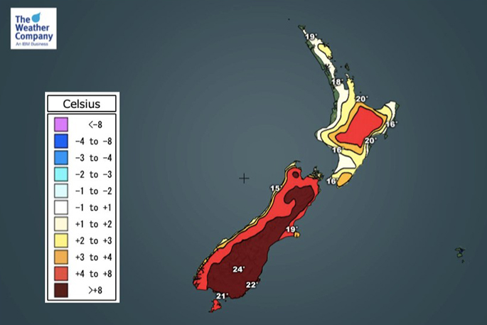 Daytime highs will be several degrees warmer than average across much of the South Island.