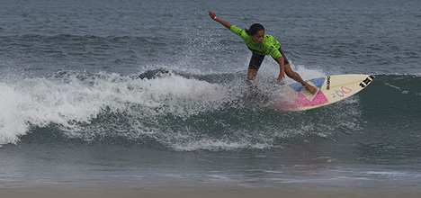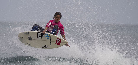 Story opted to sit wide of her competitors at the start of the heat and the strategy paid off as she rode the best wave of the final, a 5.33 point ride for a series of backhand turns.