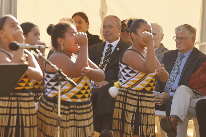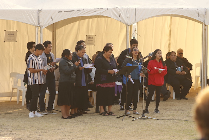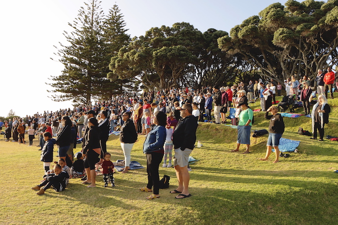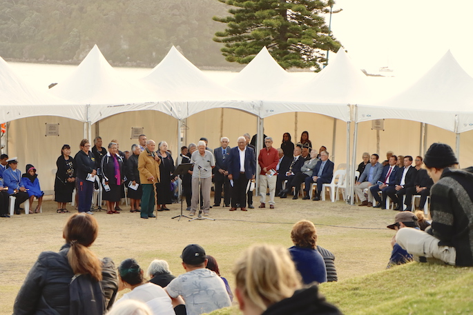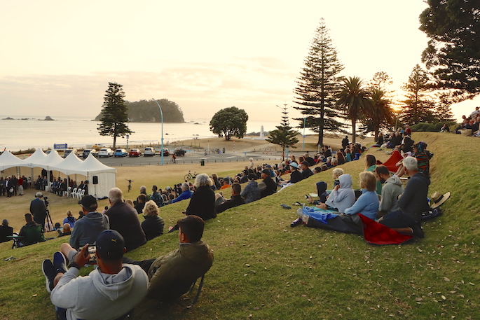 The service was held at the base of Mount Dury and started at 6.30am with a whakatau by Tauranga Moana Tangata Whenua, followed by a community celebration, speeches and hymns.