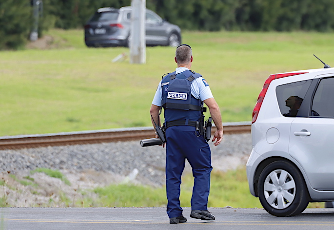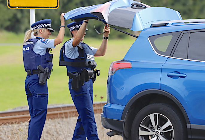 'At the railway line on Matapihi Rd there are three Police patrol cars with officers stopping every vehicle, checking inside them. Under ute covers, opening boots, every vehicle, vans, cars, everything. They're checking through all the vehicles to make sure no one's inside.