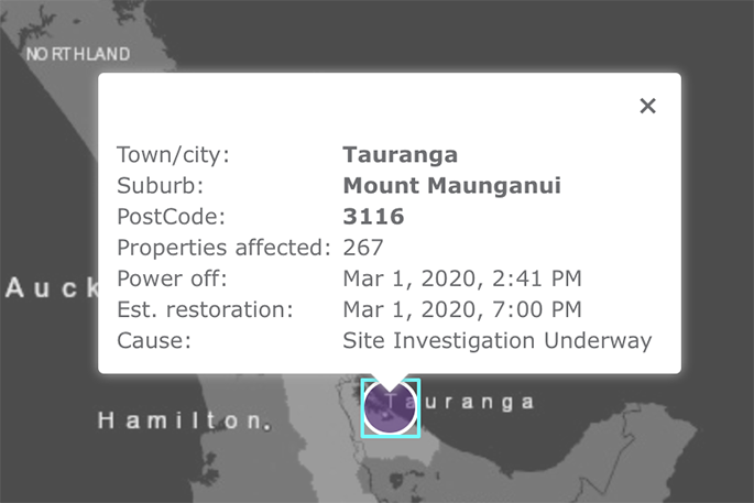 According to the Powerco website power went out at around 2.41pm with 267 properties affected.