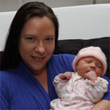 Krystle George welcomes her daughter Kayla Lee weighing 3325g (7lbs 5oz) on March 29.