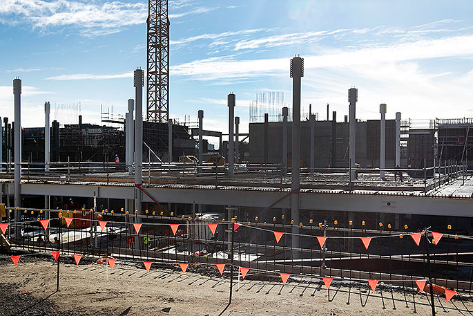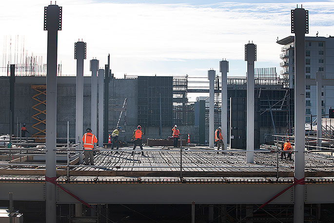 Construction of the lower level of the new flagship Farmers store is almost complete, and the upper level of the store is progressing well with the first columns for the apartment towers going up this week.