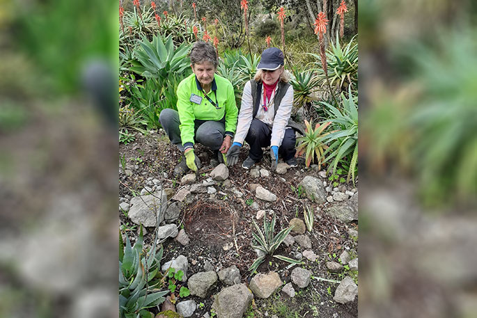 Park volunteers Shirley and Dianna in the Succulent garden